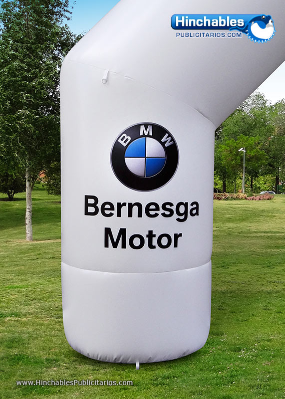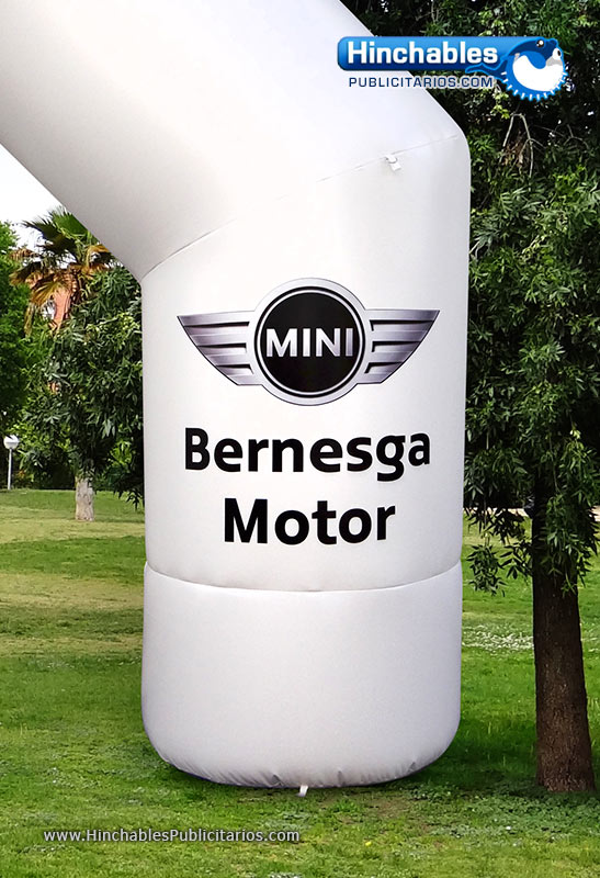 Una de las últimas producciones de Hinchables Publicitarios ha sido el Arco de Meta Hinchable para el Concesionario de Bernesga Motor en León, con logos de BMW y Mini en los tubos verticales.