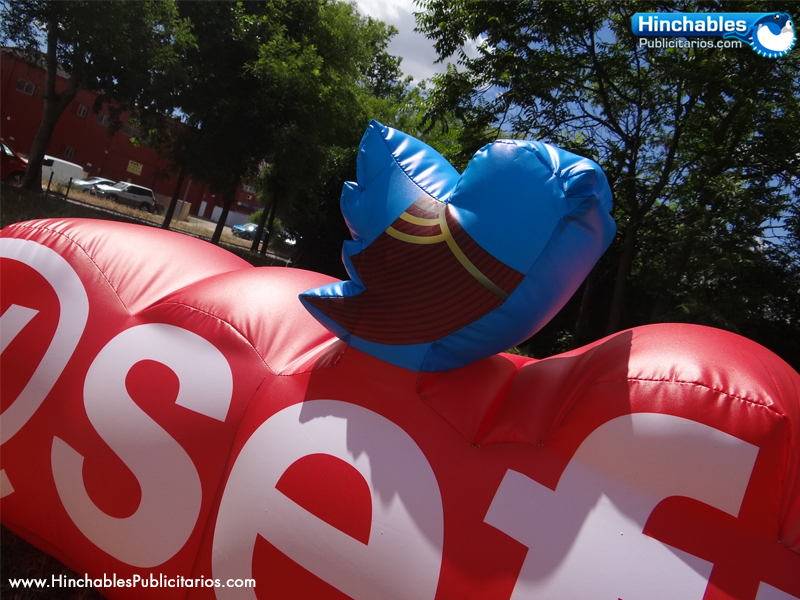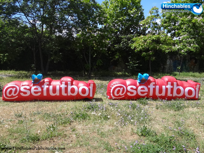 Por ello os traemos un variado de nuestros hinchables publicitarios más llamativos. Un arco de meta fucsia que atraerá las miradas (kilómetros a la rotonda) realizado en poliéster recubierto de pvc. Lleva un motor incorporado y unas anillas de acero para ser anclado al suelo. Por otro lado, os presentamos esta elegante esfera hinchable de dos metros cuadrados para un espacio instalado en la Plaza de Colón por el gobierno de México. ¿Queréis convertir en hinchable vuestro logo? Nuestros amigos de Se Futbol quisieron convertir su marca corporativa en un hinchable para sus eventos al aire libre. ¿Qué os parece?