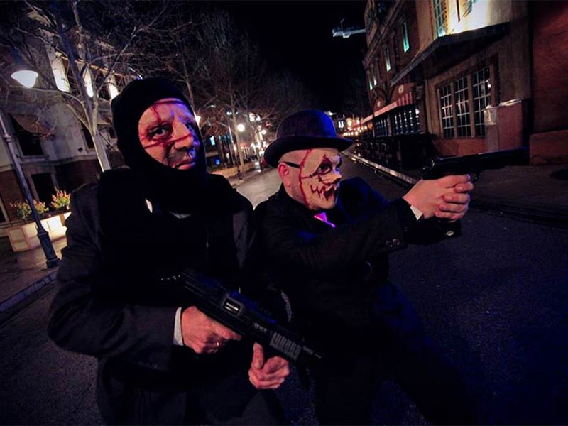 Obviamente nos montamos en toooooodas las atracciones y hacemos colas inmensas por probar esa atracción que tanto gusta a todo el mundo, como nos gusta la adrenalina!!. Pero todavía no sabemos que la verdadera adrenalina está a puntito de llegar al parque… Bueno finalmente después de haber pasado un día cargadito de emociones nos dan las 10 de la noche! Madre mía sí que da de sí el parque! Hora de irse a casa. Pero… ¿Por qué están las puertas cerradas? ¿Por qué corre todo el mundo? ¿Quiénes vienen por ahí?.